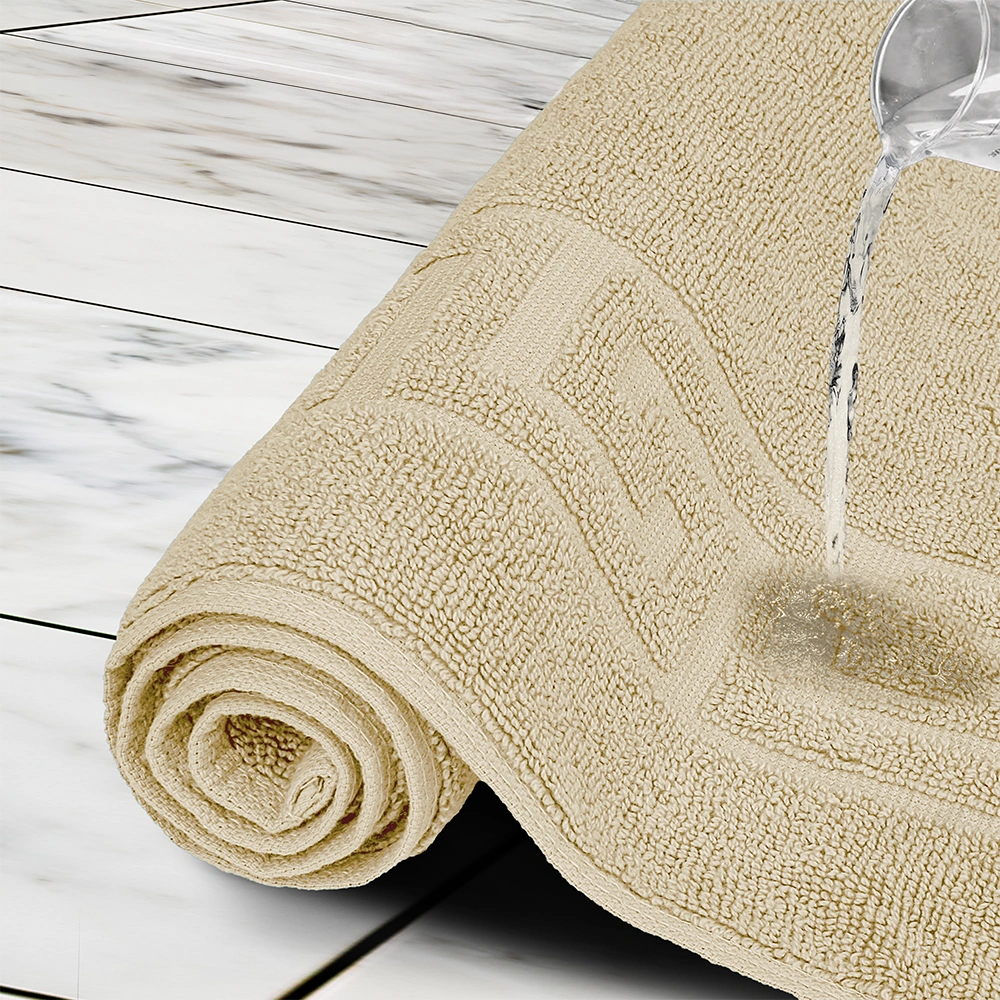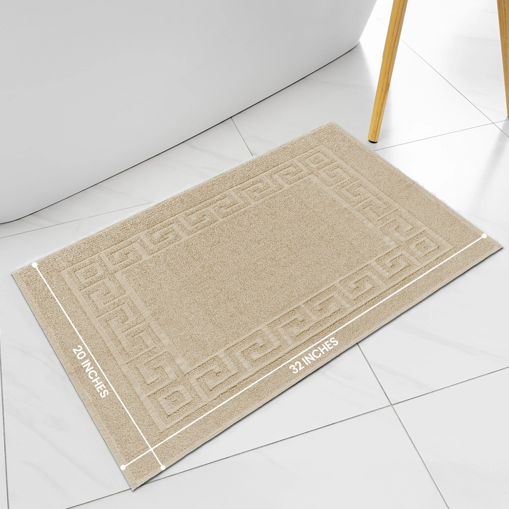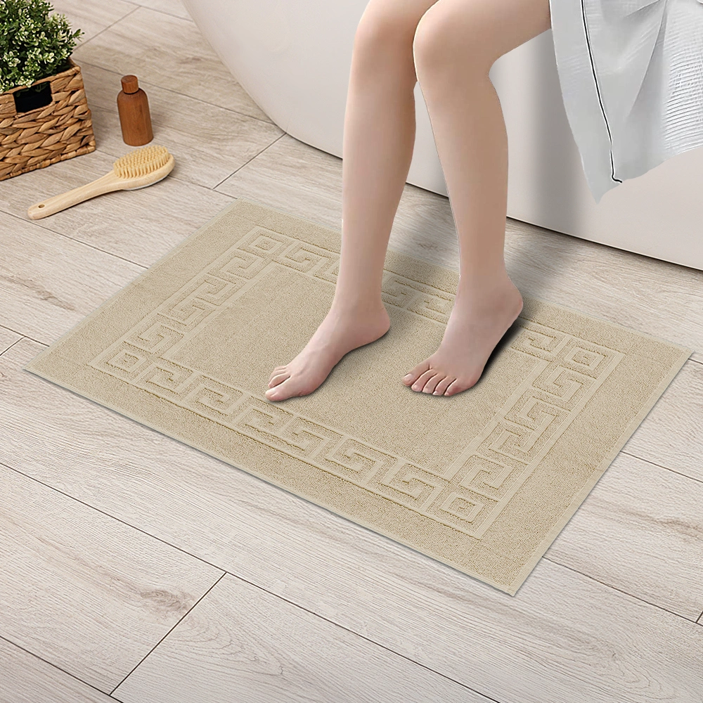 Made from 100% ring-spun cotton, this bath mat delivers plush softness while maintaining durability. The decorative Greek key border and hemmed edges resist fraying, offering a premium look without compromising long-term performance. Guests experience luxury underfoot, while operations enjoy mats built to last.