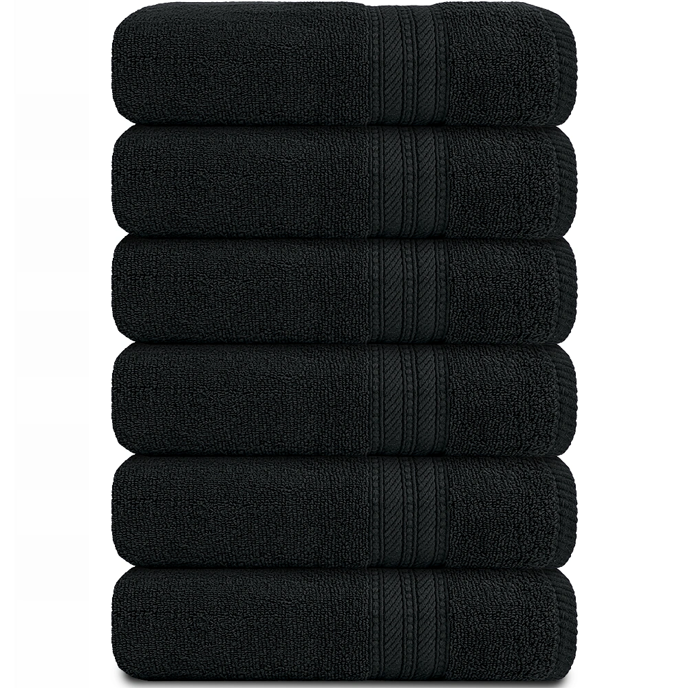 Enhance any high-traffic bathroom with these reusable hand towels (16”x28”), designed for businesses that demand both comfort and durability. Made from 100% ring-spun cotton, they deliver a plush, absorbent experience while withstanding repeated laundering. With color-fast black fabric and decorative cross-stitched hems, these towels maintain a clean, professional look and long-lasting performance for hotels, spas, gyms, offices, and upscale restroom facilities.
