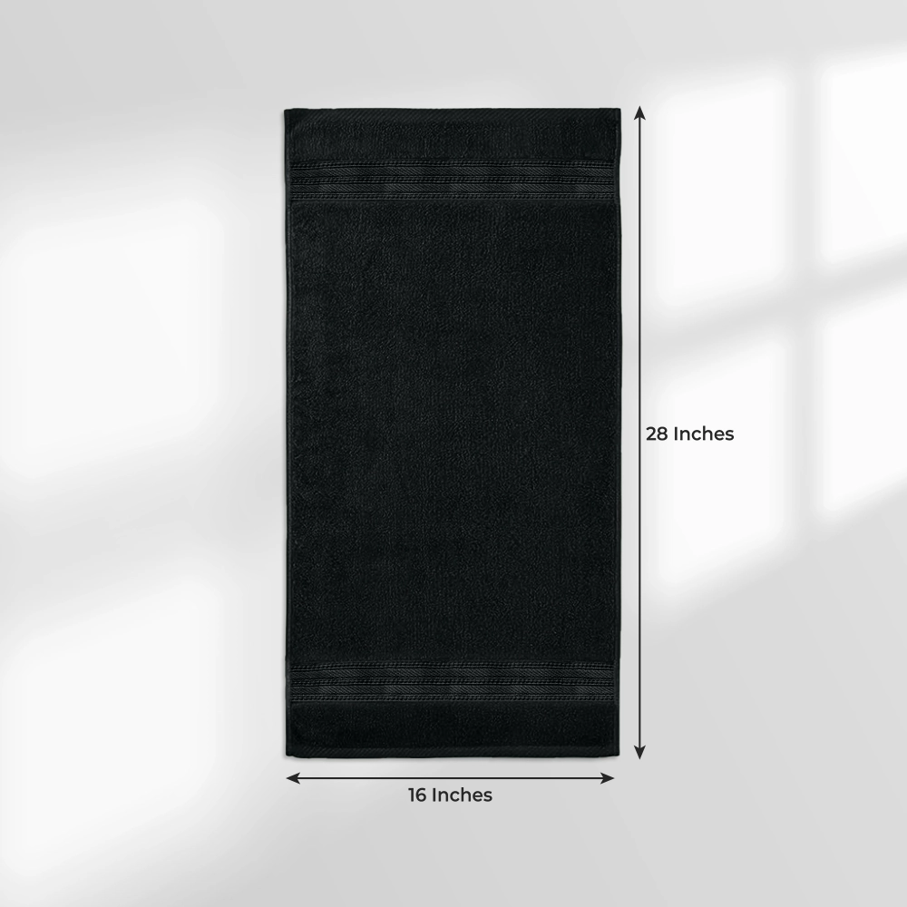 The black color enhances any bathroom environment while masking stains, wear, and fading. Its neutral, sophisticated appearance fits modern or classic décor and allows for color-coded linen programs. These towels help maintain a clean, stylish, and uniform look, making them suitable for both client-facing and staff areas.