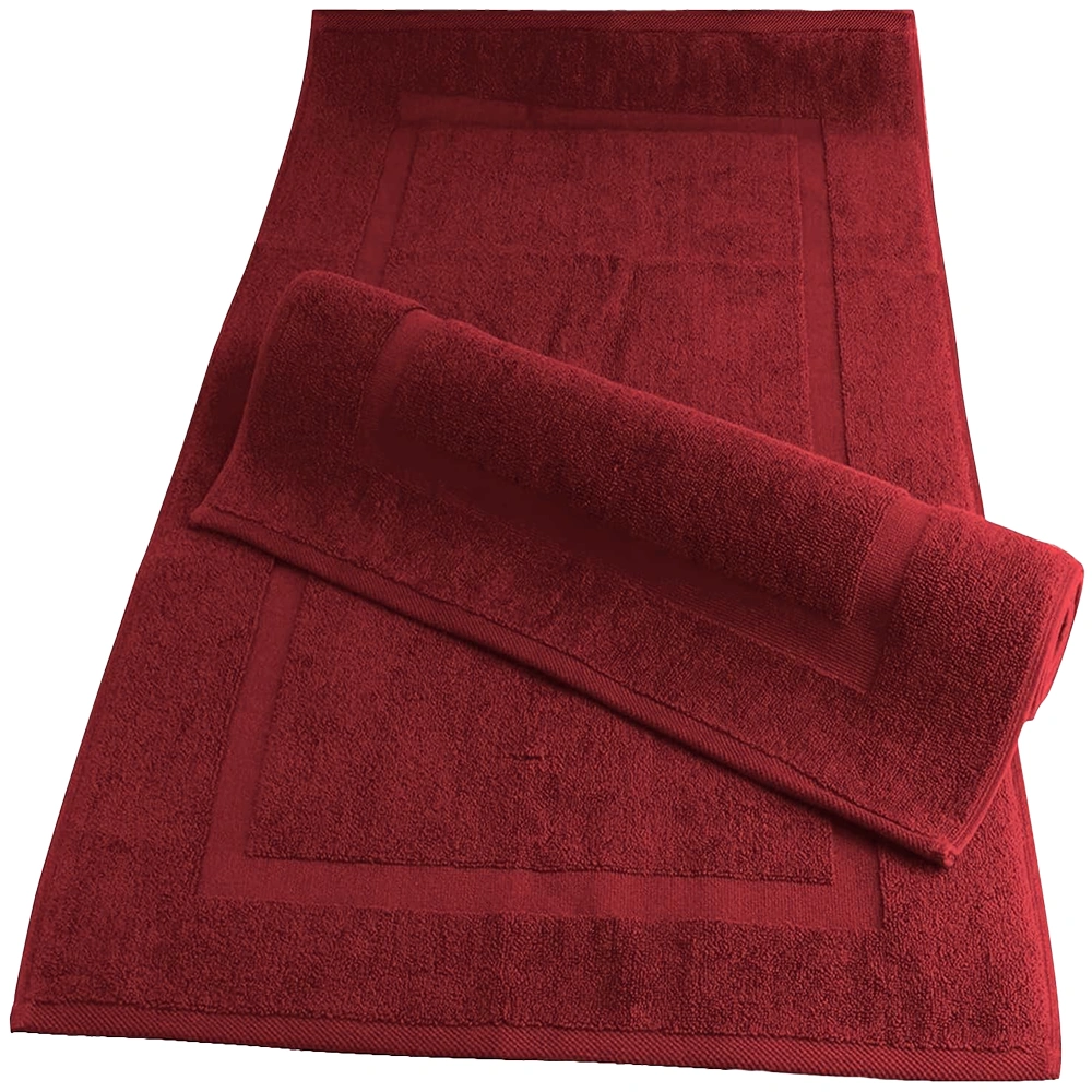 Get burgundy bath mats for your hotel, resort, or wellness centers that guests immediately notice. These come with plush weight that designs a luxury resort motel stay. Woven from the finest cotton, the ring-spun fibers create a surface that is remarkably soft yet thrives under the heavy-duty cleaning requirements of a busy lodge. The deep wine hue serves a dual purpose, anchoring the room with a sophisticated dobby border design while naturally masking the inevitable spills and high-traffic wear seen in a nursing home or hospital environment.