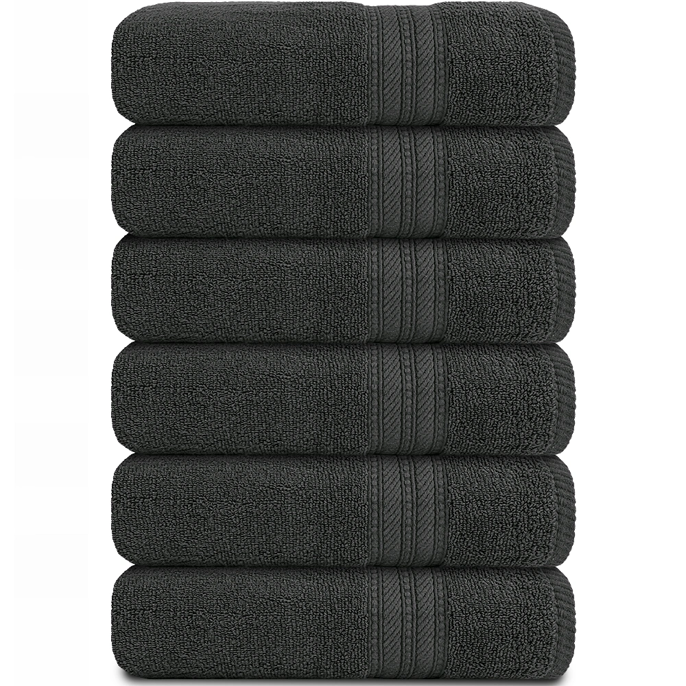 These dark gray hand towels (16″x28″) offer a premium feel without compromising commercial durability. Crafted from 100% ring-spun cotton, they are soft, absorbent, and long-lasting, with colorfast fabric that maintains its dark gray hue even after repeated laundering. Cross-stitched hems prevent fraying, making them perfect for hotels, spas, gyms, offices, and restaurants seeking a practical yet luxurious solution for high-traffic bathrooms.