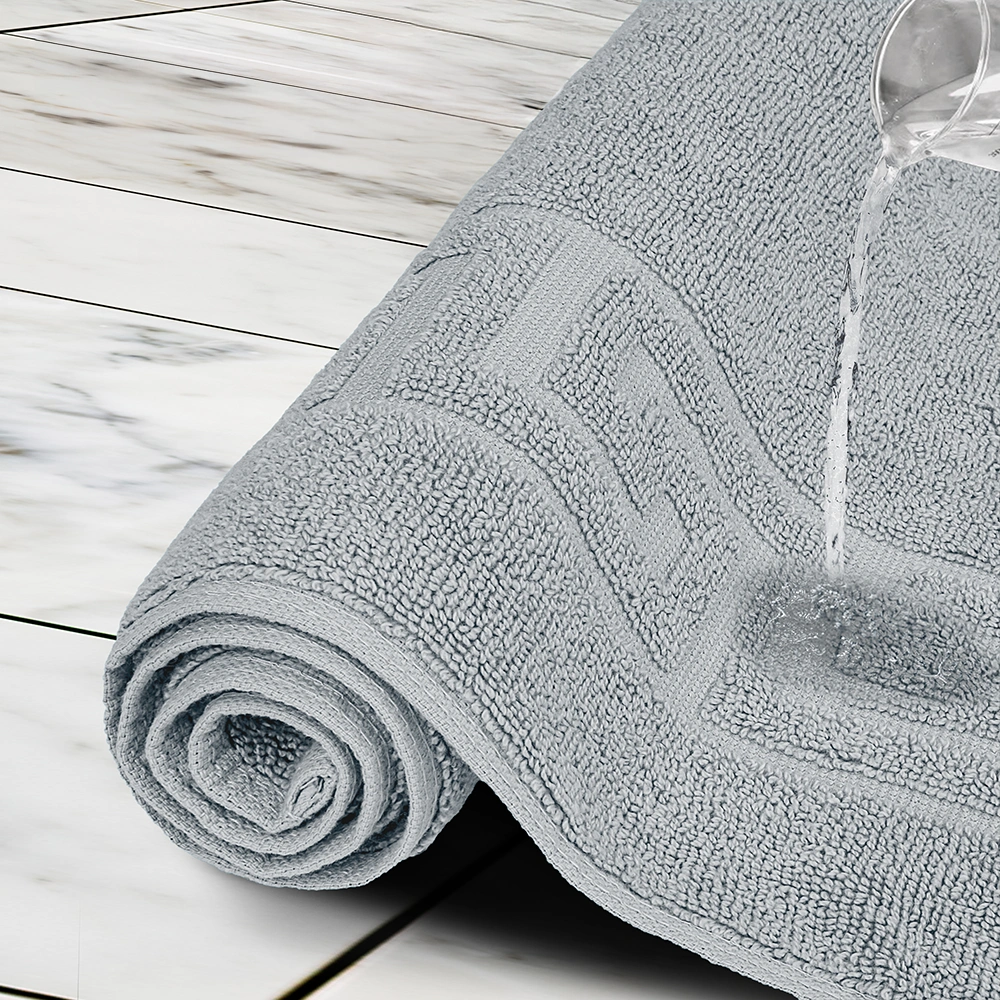 This durable bath mat in light grey is engineered for environments where consistent performance, repeated washing, and long service life are essential. Designed for hotels, gyms, and rental properties, it maintains structural integrity even under heavy daily use. Unlike standard alternatives, this durable bath mat focuses on lifecycle performance to ensure it remains functional, absorbent, and presentable through continuous industrial laundering while maintaining a clean light grey appearance suited for modern commercial interiors.