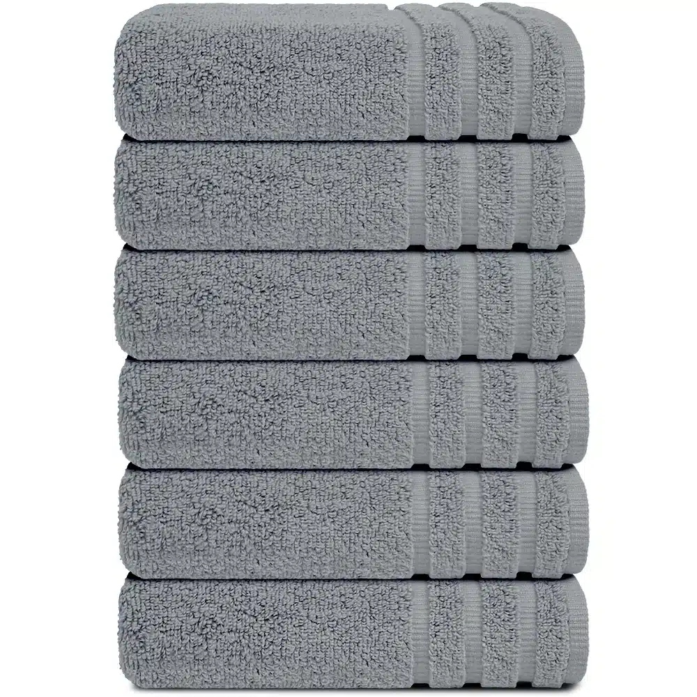 Featuring decorative hems, reinforced edges, and colorfast terry cotton, these towels maintain their light-grey tone and structure even after repeated commercial laundering. Shrink-resistant and built for heavy rotation, they reduce replacement frequency and maintain consistent presentation in hotels, gyms, salons, and spas, saving time and lowering operating costs for B2B buyers.