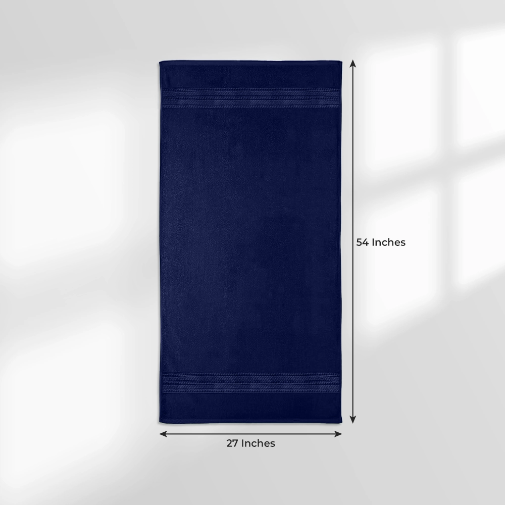 - Color: Rich navy blue enhances the depth and dimension of the towel’s fluffy texture