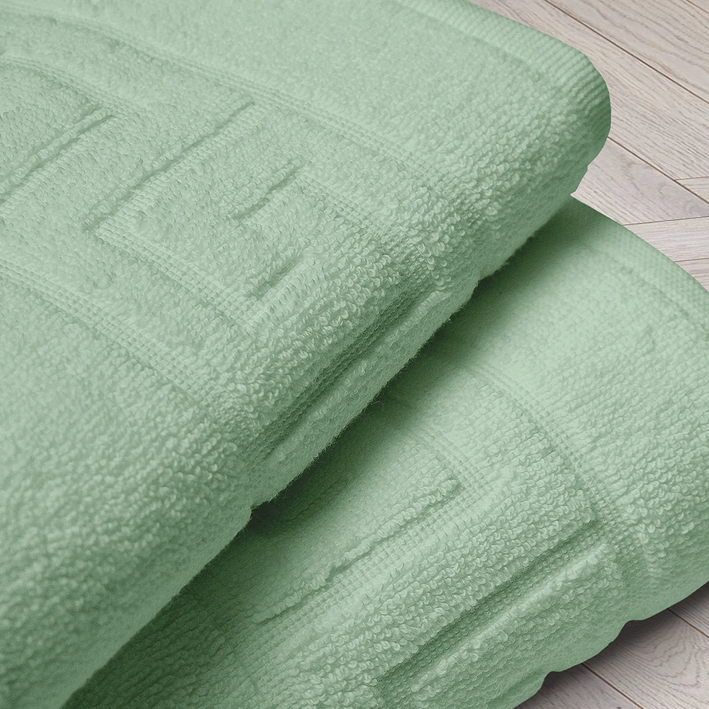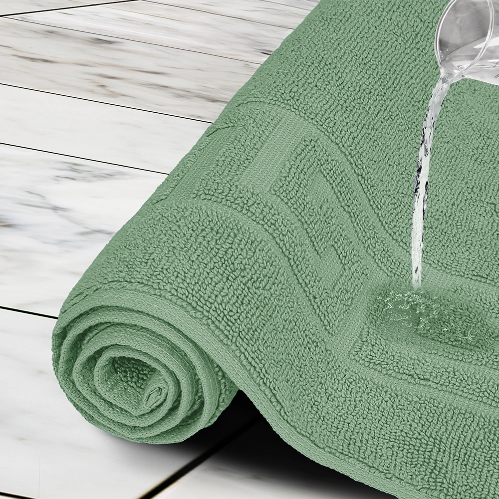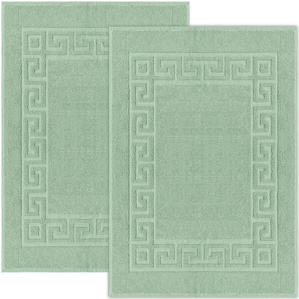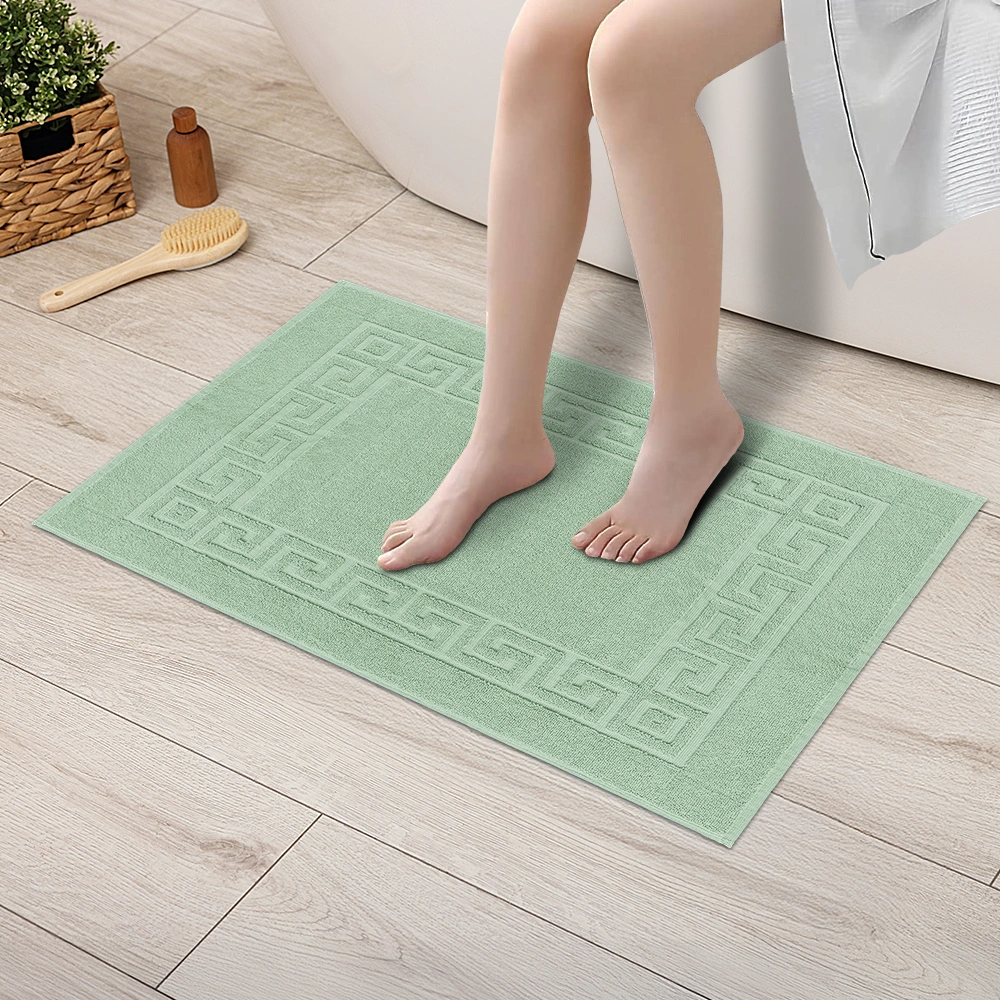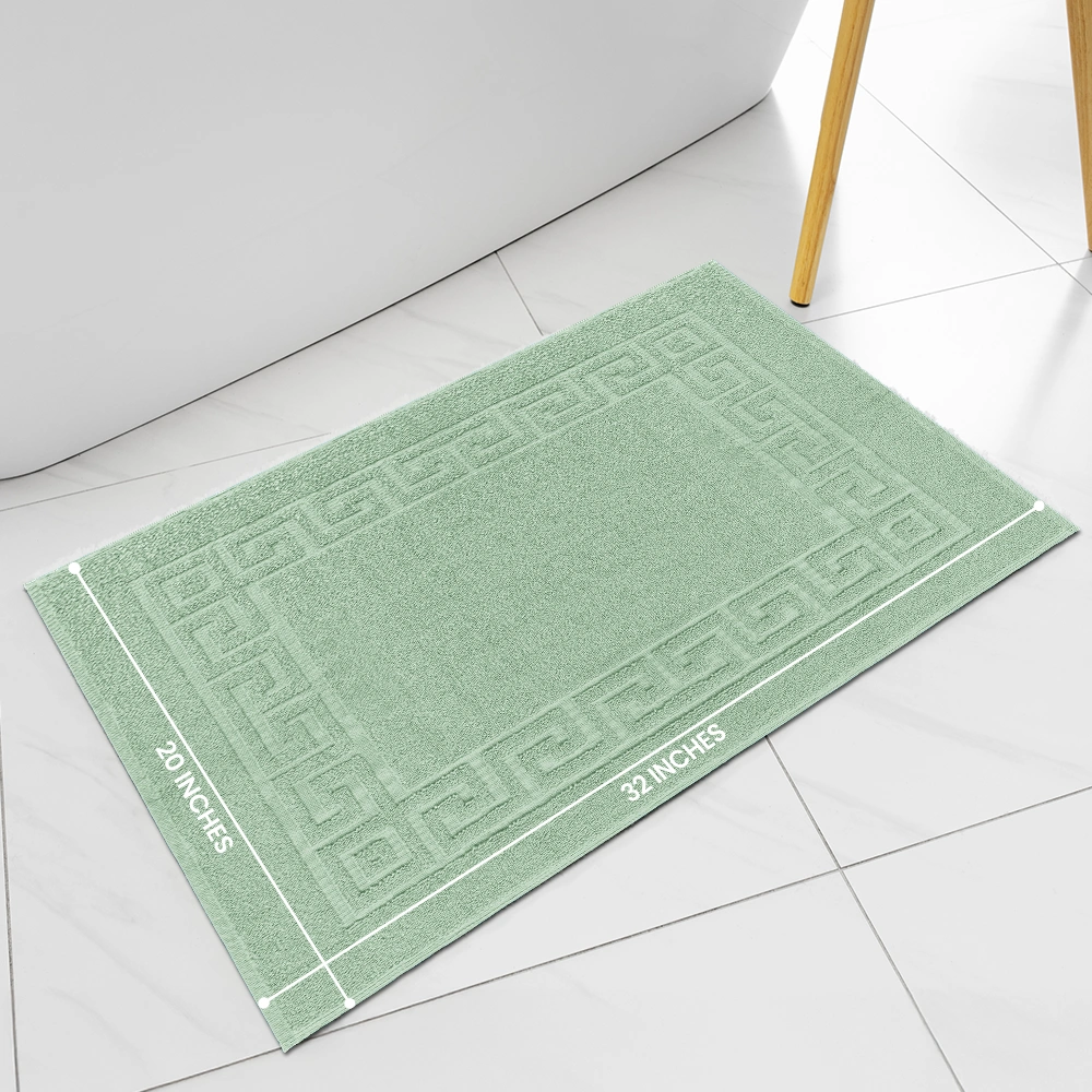 Our sage green bath mat transforms everyday bathrooms into serene, spa-like retreats. Crafted from 100% ring spun cotton, it delivers a plush, comfortable experience while maintaining fade-resistant color through industrial or home laundering. The decorative Greek key border and hemmed edges add a refined touch while preventing fraying, making it ideal for luxury wellness clinics, medical spas, or curated Airbnb spaces. Available in a convenient 20” x 32” size and shipped in cases of 4 dozen, this mat blends trend-forward design with practical durability for professional environments.